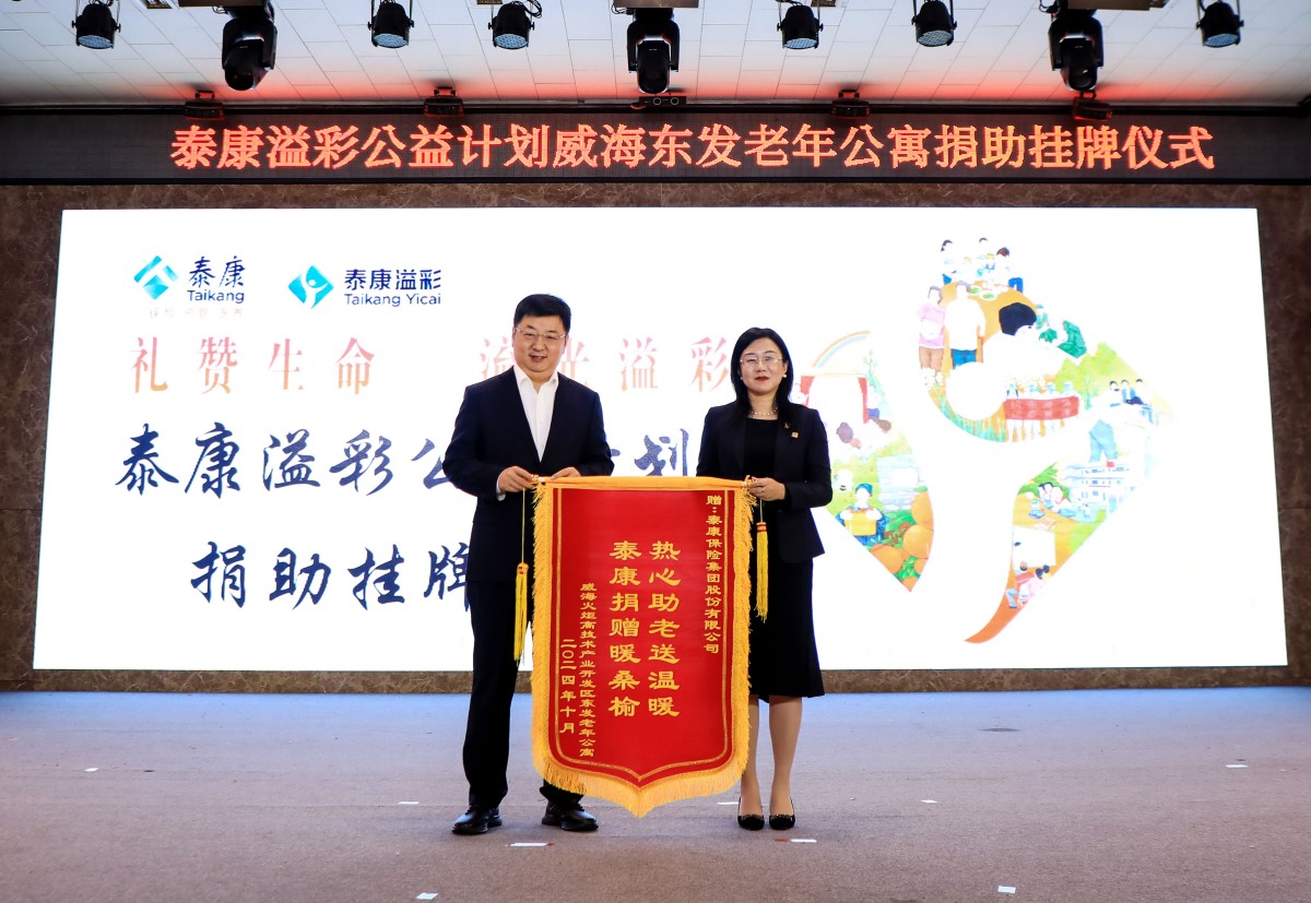 金秋送爽,“溢”路同行。10月23日,泰康“溢彩千家”公益項(xiàng)目捐助掛牌儀式在威?;鹁娓呒夹g(shù)產(chǎn)業(yè)開發(fā)區(qū)東發(fā)老年公寓舉行,標(biāo)志著泰康“溢彩千家”公益項(xiàng)目正式落地濱海小城,更好地助力威海養(yǎng)老事業(yè)發(fā)展。威海市保險(xiǎn)行業(yè)協(xié)會(huì)副秘書長白如和、高區(qū)社會(huì)事業(yè)局養(yǎng)老服務(wù)科科長吳漢明、老年公寓黨支部書記苗曉丹、泰康人壽威海中支負(fù)責(zé)人王彬、副總經(jīng)理王琴,老年公寓長輩以及泰康人壽威海中支HWP溢彩志愿者及員工代表等參加了儀式。
