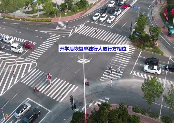 2.調(diào)整部分學(xué)校周邊路口的放行方式,由單獨(dú)行人相位調(diào)整為行人跟隨機(jī)動(dòng)車通行,減少綠損,從而提高路口、路段整體通行效率。