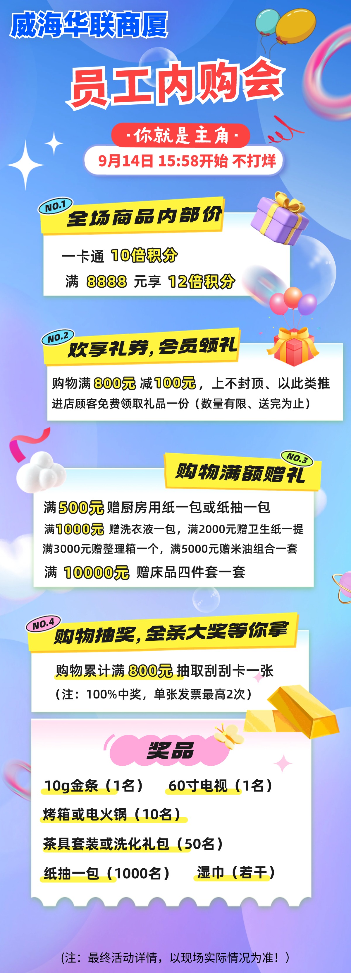 9月14日,威海華聯(lián)商廈員工內(nèi)購(gòu)會(huì)