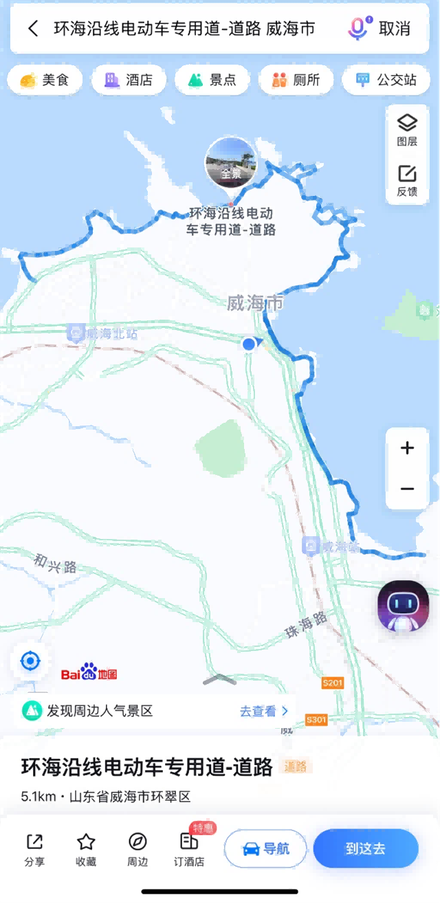 環(huán)海路沿線電動車專用道”在百度地圖、高德地圖平臺均已上線,導(dǎo)航時(shí)請選擇騎行模式。