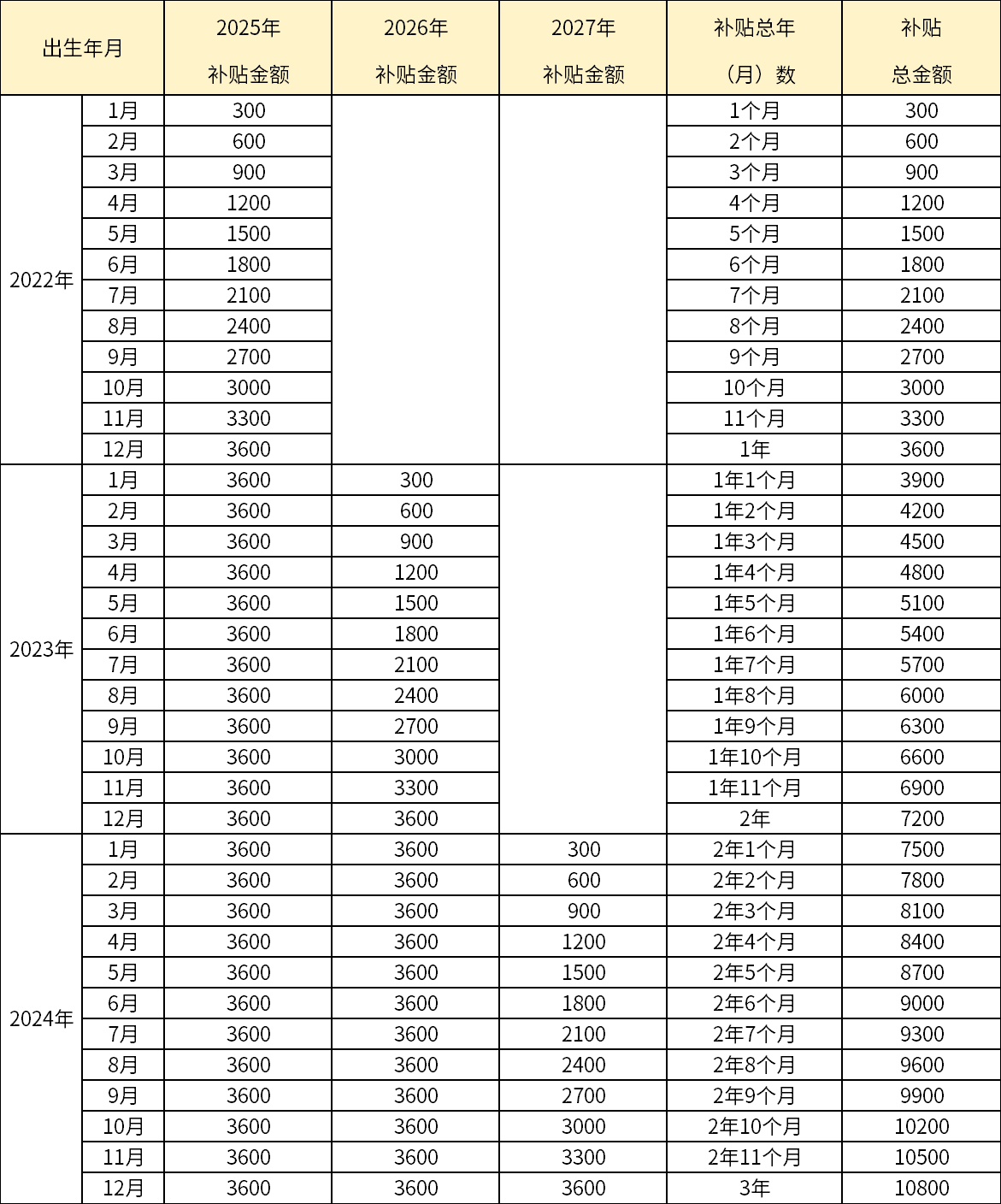 (1)對于2025年1月1日及以后出生的嬰幼兒,可連續(xù)申領(lǐng)3年補貼,共計10800元。